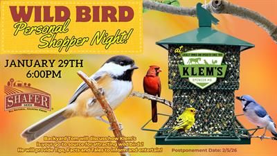 ???????? to attend! Bring your questions and get ???????????????????????? ?????????????????????????????? to help you make the best purchases at Klem’s—so you can enjoy more wild birds right outside your door.